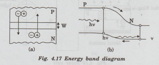 light radiation from sun falls on the P-N junction diode, the photon energy is