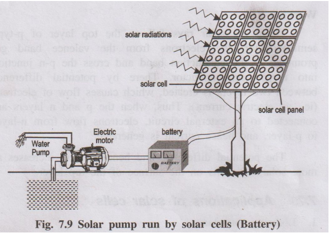 Fig. 7.9 Solar pump run by solar cells (Battery)