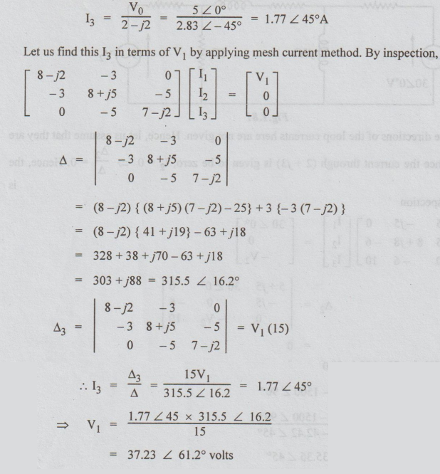 Solution: The directions of the loop currents here are not given. Hence, let us assume that they are all clockwise. Since the current through (2 + j3) is given to be zero, I2 = 0 => ∆2/ ∆=0 Hence the condition
