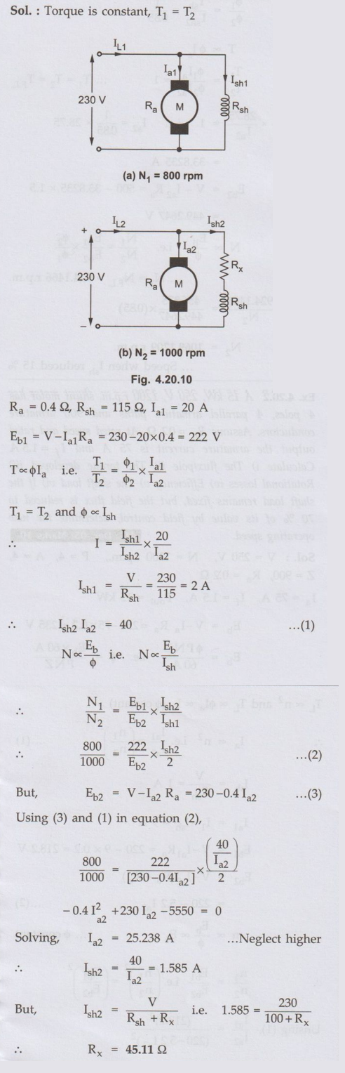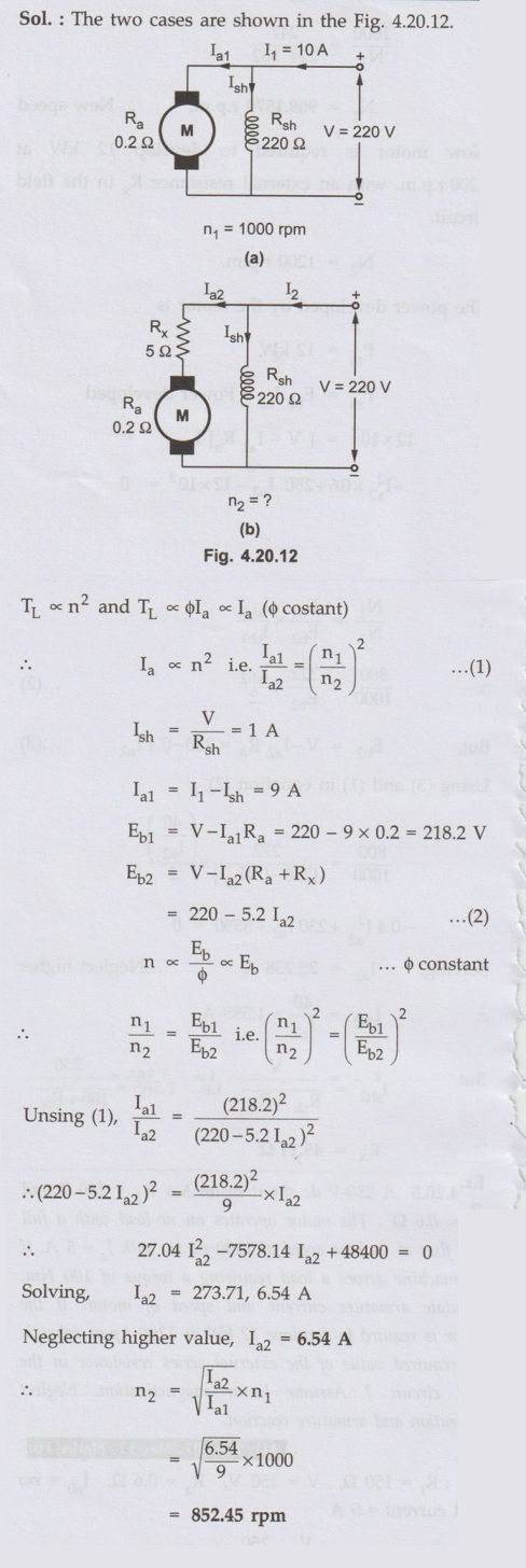 and 220Ω respectively. The motor is driving load torque TL ∝n2 and running at 1000 rpm drawing 10 A