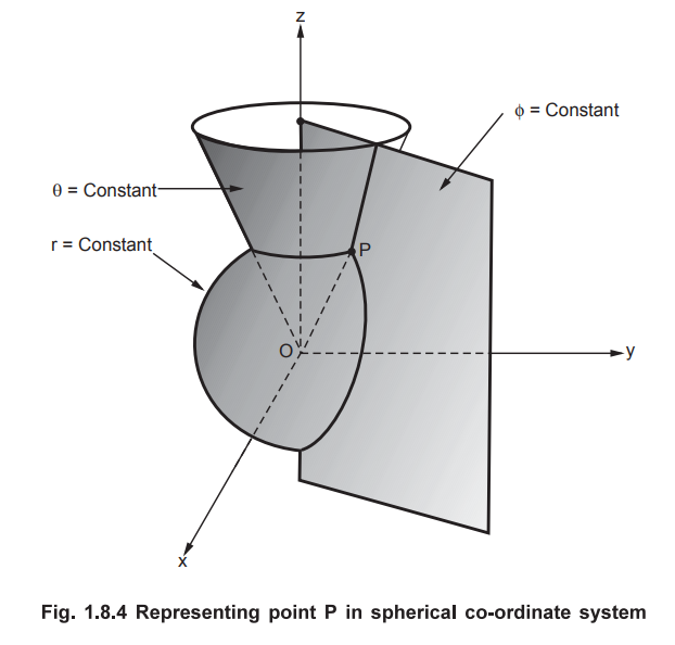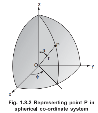 spherical co-ordinate system used to represent field vectors. AU : May-05,18, Dec.-08,