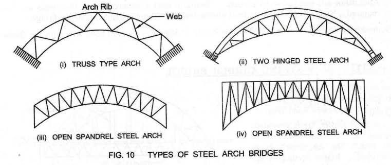Fig. 10. Types of steel arch bridges are: (i) Truss Type Arch, (ii) Two Hinged