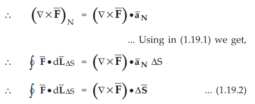 • This happens for all the interior boundaries. Only at the outside boundary cancellation does not exist. Hence summation of all closed line integrals for each and every ΔS ends up in a single closed line integral to be obtained for the outer boundary of the total surface S. Hence the equation (1.19.2) becomes,