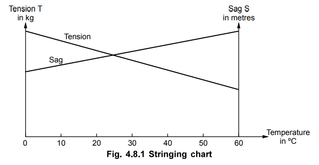 instead of solving the cubic equation, it is possible to obtain the graph of tension in kg against temperature in °C and the graph of sag in metres against temperature in °C. Such graph is called stringing chart.