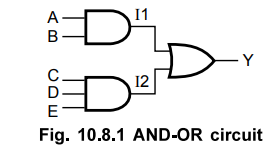 The circuit is an AND-OR circuit in which signals A, B, C, D and E are input