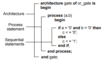 • The main components of a VHDL description consists of following kinds of declarations : ■ Package (optional) ■ Entity ■ Architecture ■ Configuration (optional)
