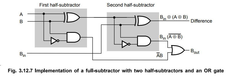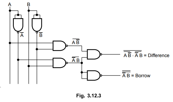 gate, as shown in the Fig. 3.12.7. The difference output from the second half-subtractor