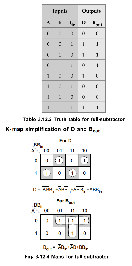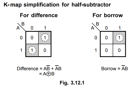 output variables. The Boolean expression for the outputs of half-subtractor can