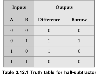 As shown in the Table 3.12.1, half-subtractor has two input variables and two