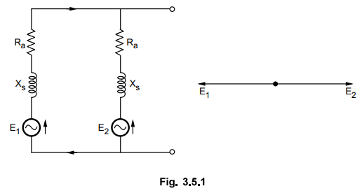 the two alternators shown in the Fig. 3.5.1 which are in exact synchronism. Due