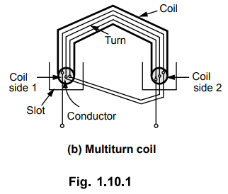 the coil in each slot is called coil side of a coil as shown in the Fig. 1.10.1