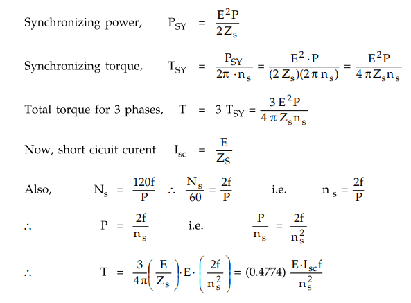= Synchronizing torque per phase, E = Induced e.m.f. per phase
