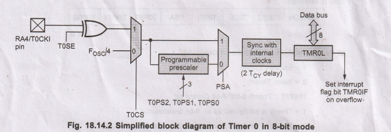 Fig. 18.14.2 shows the simplified block diagram of Timer 0 in 8-bit mode.