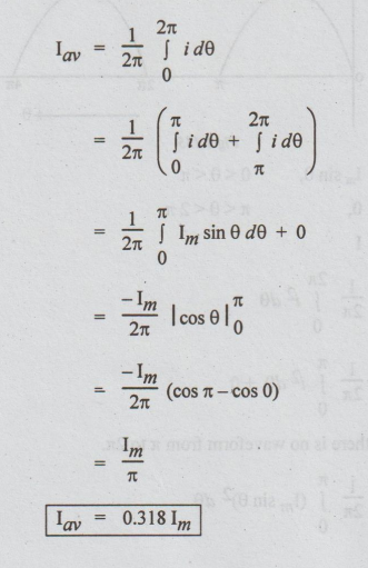 Average value of half-wave rectified alternating current :