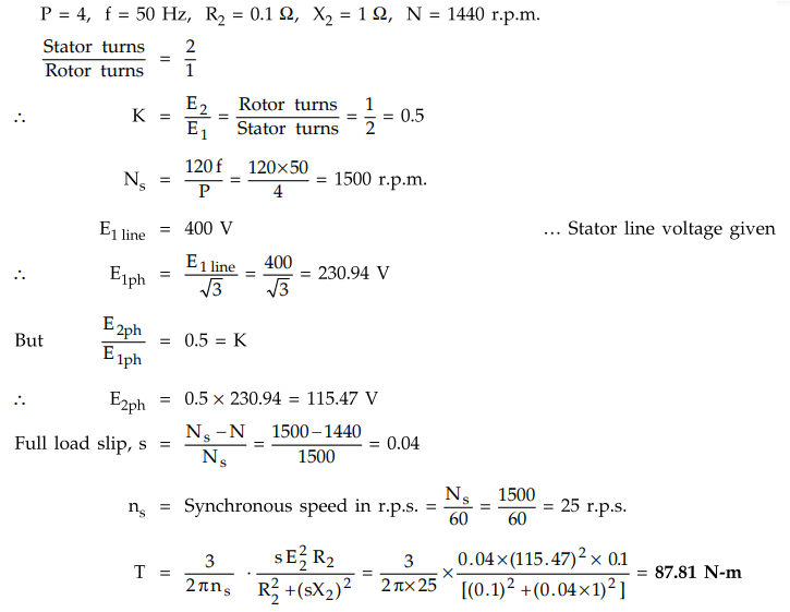 Electrical Machines II: UNIT III: a. Three Phase Induction Motor : Tag: Engineering Electrical Machines - II : Three Phase Induction Motor - Torque Equation