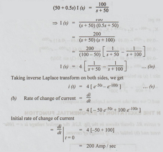 + 0.5 di/dt = 100 e-50t … (ii)