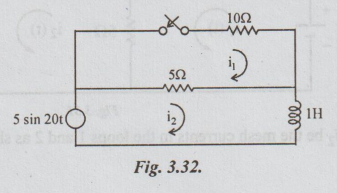 25 For the circuit shown in fig. 3.32, determine the currents when the switch