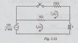 In S-domain the given circuit is re-drawn as shown in fig. 3.33.
