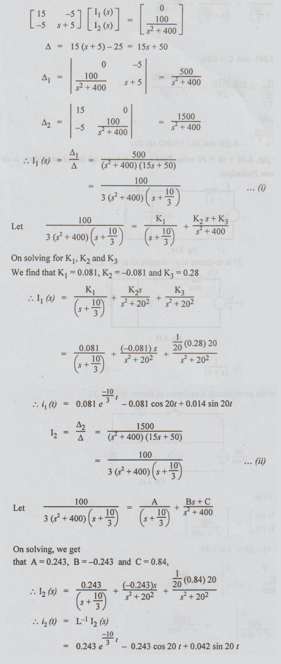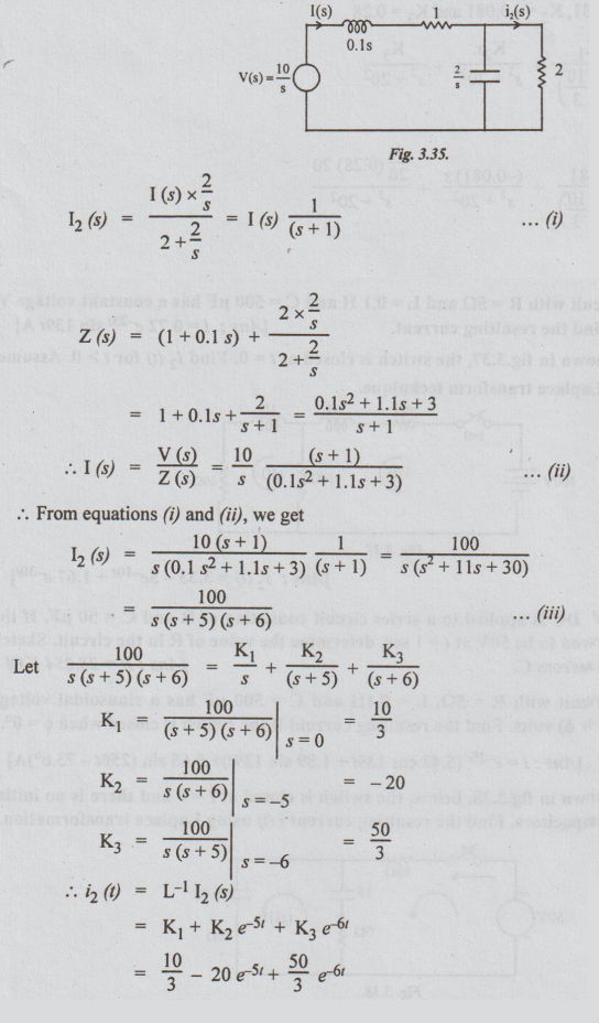 : The circuit in fig 3.35 is re-drwan in s – domain as