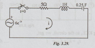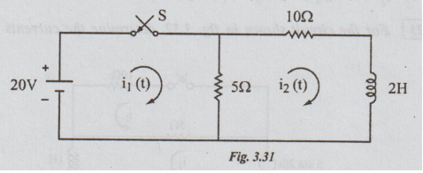 22 In the circuit shown in fig. 3.29, the switch is closed at time t = 0. Obtain