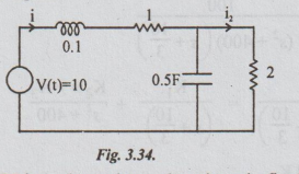 26 In thefig 3.34, v (t) = 10 volts. Find i2 (t). Assume all initial conditions