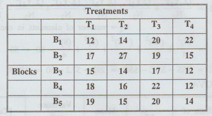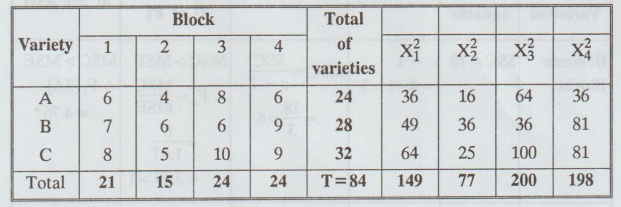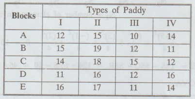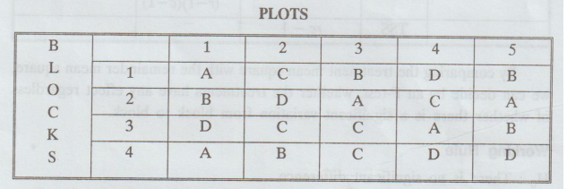 varieties A, B, C, D of a fertiliser are tested in a randomized block design