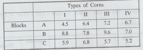 below shows the seeds of 4 different types of corns planted in 3 blocks. Test