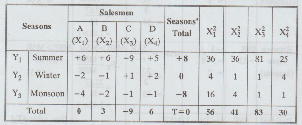 the test shows that the salesmen and the seasons are alike, so far as the sales