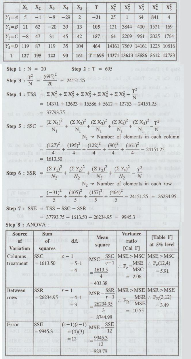 Statistics and Numerical Methods: Unit II: Design of Experiments : Tag: : Merits, Demerits, Solved Example Problems | Design of Experiments | Statistics - Two - Way Classification