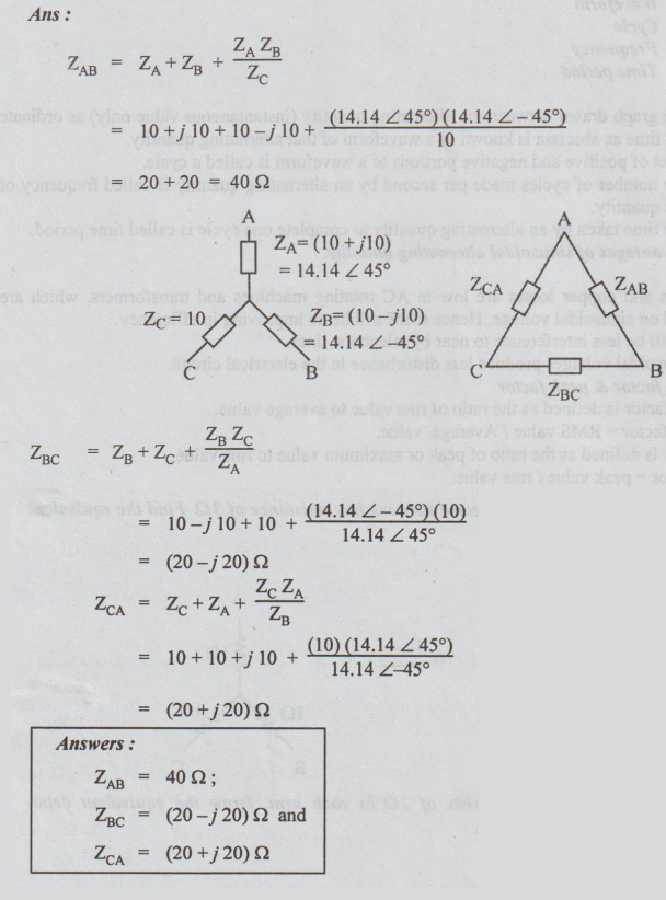 Three impedances (10+ j10) 2, (10-j10) 2 and 1022 are in star. Find the values