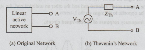 Any linear active network with output terminals A, B as shown in fig. (a) can