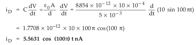 plates. Calculate the displacement current assuming ε = 2 ε0. AU : Dec.-15