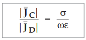 that of displacement current density in a medium with σ = 4 × 10-3 Ʊ/m and εr = 30.