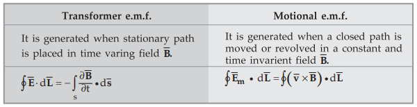 Q.25 Distinguish between transformer e.m.f. and motional e.m.f.