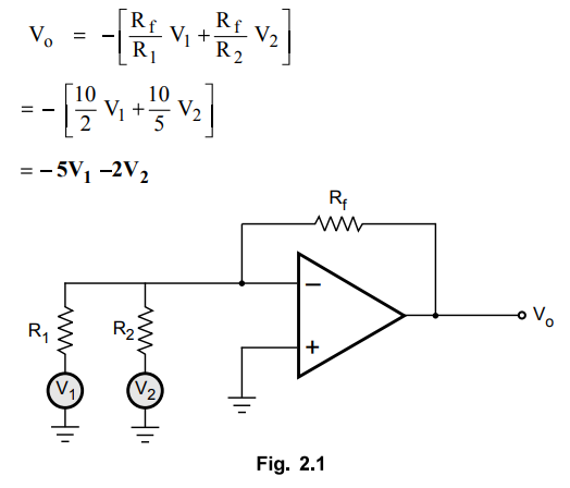 Gain of the inverting amplifier is given by – Rf / R1 = -