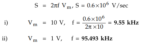 Ans : S = Imax / C = 100 × 10-6 / 100 × 10-12 = 1 × 106 V/sec = 1 V/µ sec