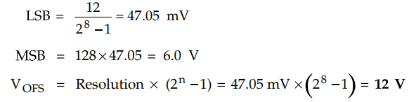 Calculate the values of the LSB, MSB and full scale output for an 8-bit DAC for