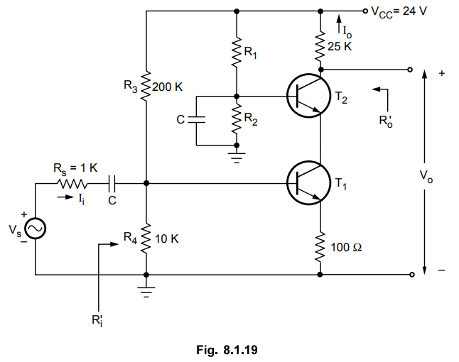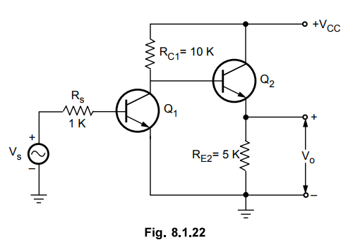 • Consider a two stage amplifier circuit in a CE-CC configuration as shown in Fig. 8.1.22 and assume transistor parameters at the corresponding quiescent points are,