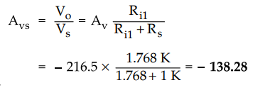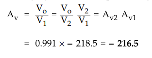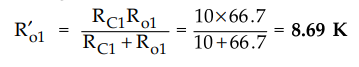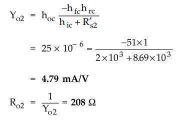 Ro = Ro2 × RE2 / Ro2 + RE2 = 208 × 5K / 208 × 5K = 199.69 Ω