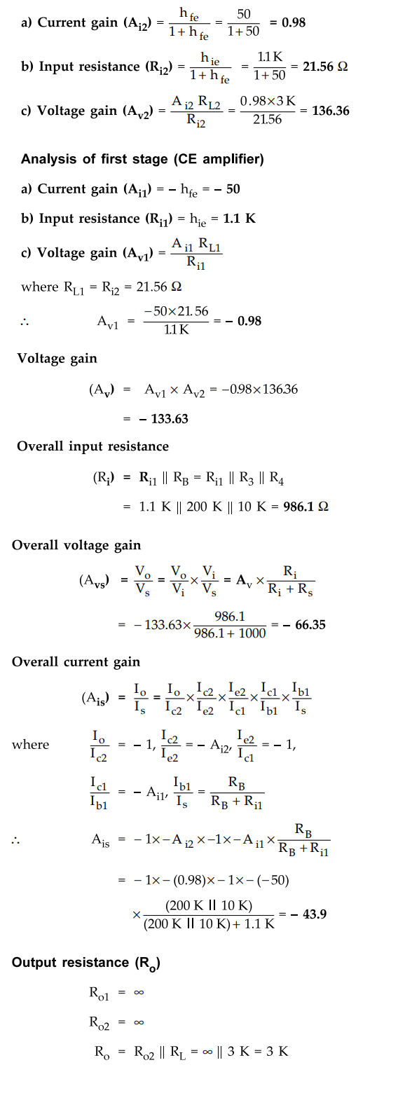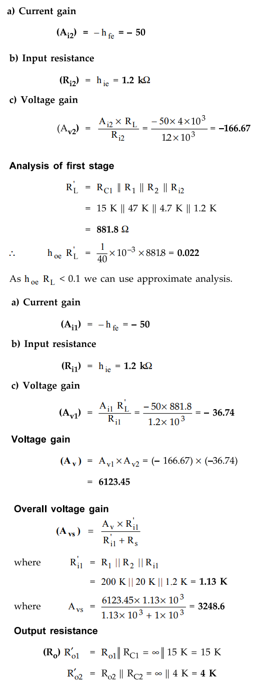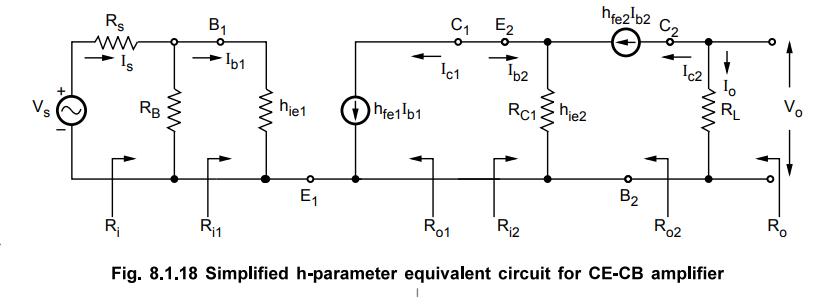 Electron Devices and Circuits: Unit IV: Multistage and Differential Amplifiers : Tag: : Equivalent circuit, Features, Calculations, Solved Example Problems | Multistage Amplifiers - Two Stage RC Coupled CE-CB Cascode Amplifier