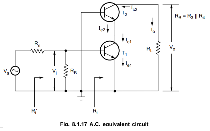 • Fig. 8.1.17 shows the a.c. equivalent circuit for cascode amplifier. It is drawn by shorting d.c. supply and capacitors.