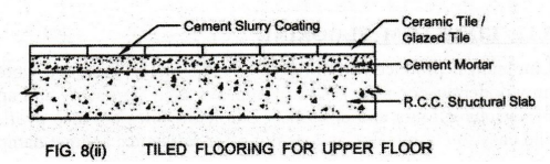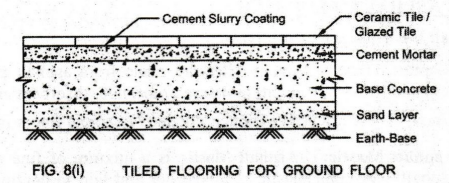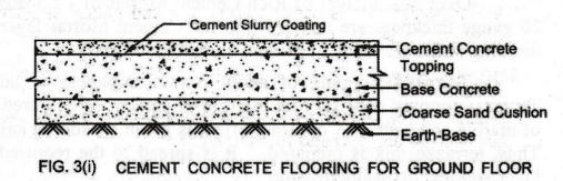 See Fig. 8(i). In the case of Ground Floor, an Earth-Base is prepared, compacted well and levelled. A layer of sand is spread above it. A layer of Base Concrete is laid over the sand.