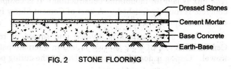 Mortar of 1 : 4 mix is spread over the base concrete. Well-dressed Stone Slabs