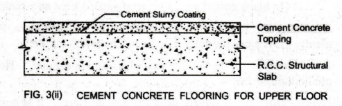 Cement Concrete Flooring is durable and hard. It has good resistance to wearing