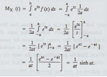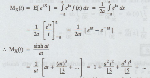 Show that for the uniform distribution f (x) = 1/ 2a', - ɑ < x < ɑ the moment generating function about origin is sinh ɑt / ɑt [AU N/D 2006]