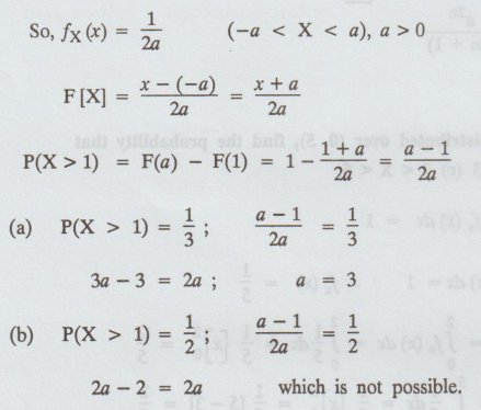 If X is uniformly distributed over (-a, a), a > 0 find a, so as to satisfy the following: (a) P(X ≥ 1) = 1/3 (b) P(X > 1) = 1/2