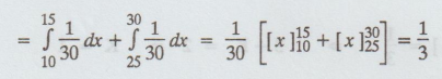 = P(10 ≤ x ≤ 15) + P(25 ≤ x ≤ 30)