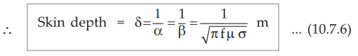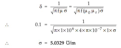 10.7.4 Calculate skin depth for medium with conductivity 100 Ʊ/m, relative