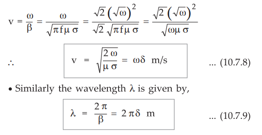 Equations (10.7.8) and (10.7.9) gives the velocity of propagation and wavelength