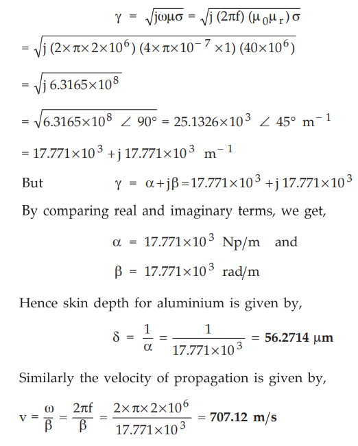Sol. : For aluminium with very high conductivity, the propagation constant is given by,